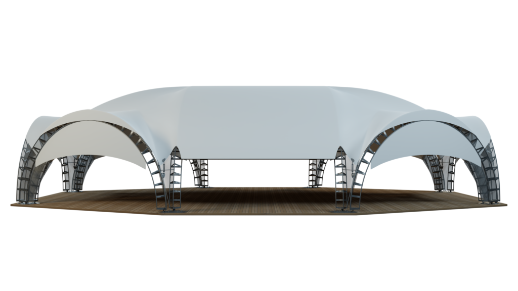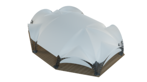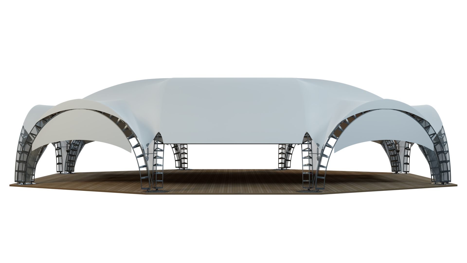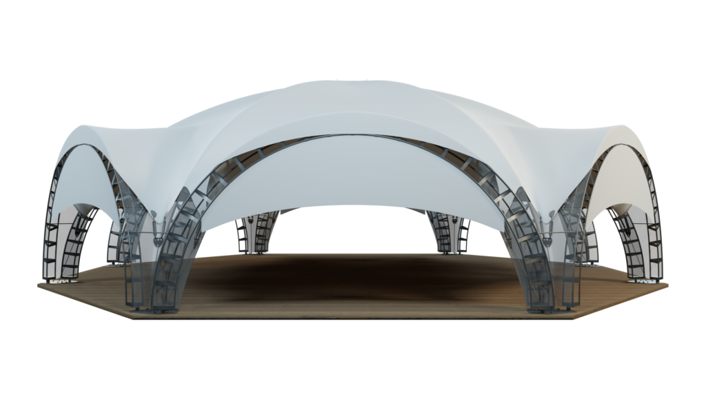 Гексагональный шатер с площадью 241м² и возможностью размещения 160 человек