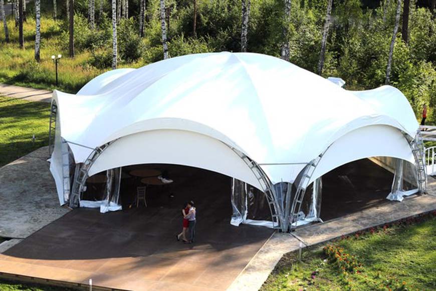 С помощью быстровозводимых конструкций можно организовать удобный торговый павильон на улице, в парках, на площадях, за территорией города. Мобильные шатры используют на протяжении всего теплого сезона года или ставят как временное сооружение на различных мероприятиях, предполагающих массовое скопление на улицах большого количества народа.