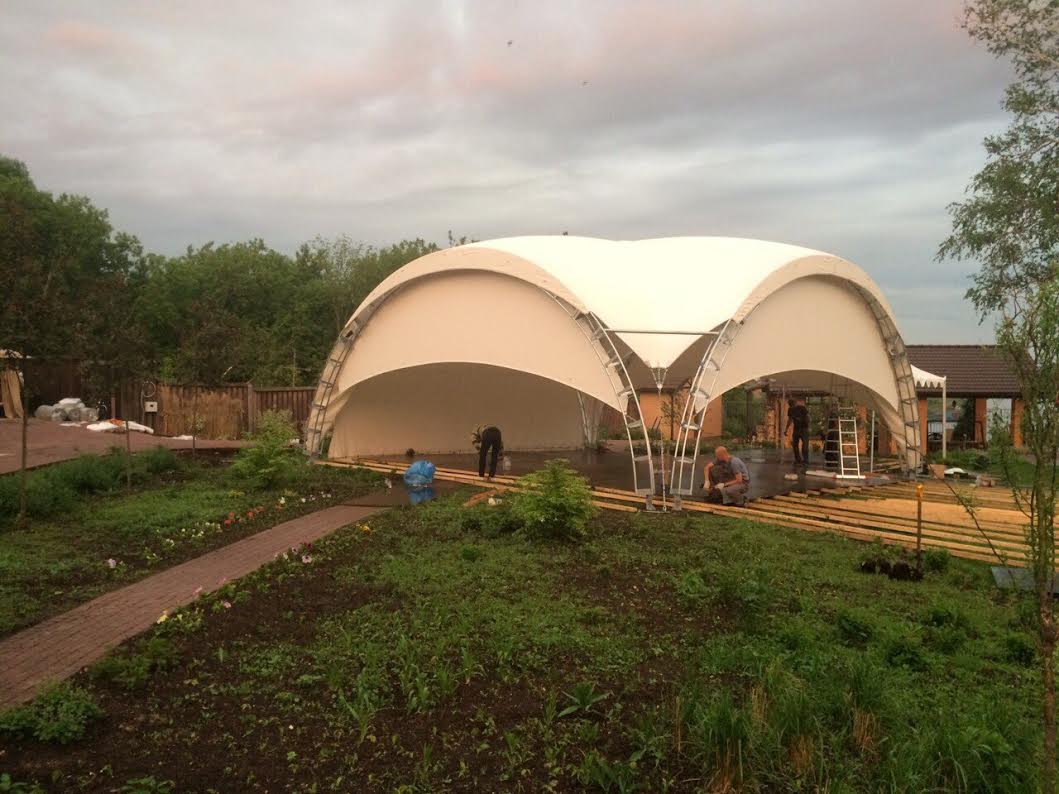 - Шатры под ключ. Делаем тентовые конструкции из сертифицированных материалов на собственной производственной площадке, сами привозим и устанавливаем их;