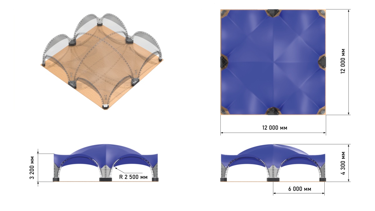 РусТент - Арочный шатер дюна 6х6 (36 м²) Арочный шатер дюна 6х6 (36 м²)