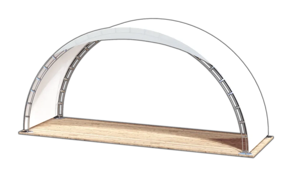 Арочный модуль с площадью 18м² и возможностью размещения 12 человек